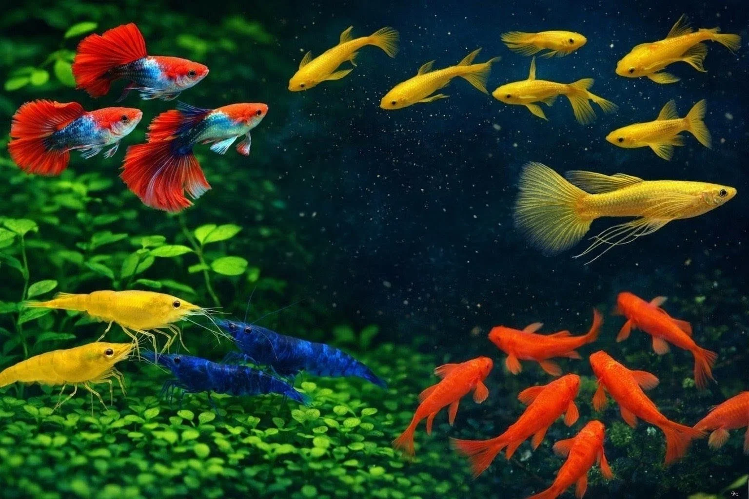 Discover our premium collection of vibrant guppies, colorful koi, golden fish, and exotic shrimp—carefully bred for quality and beauty.